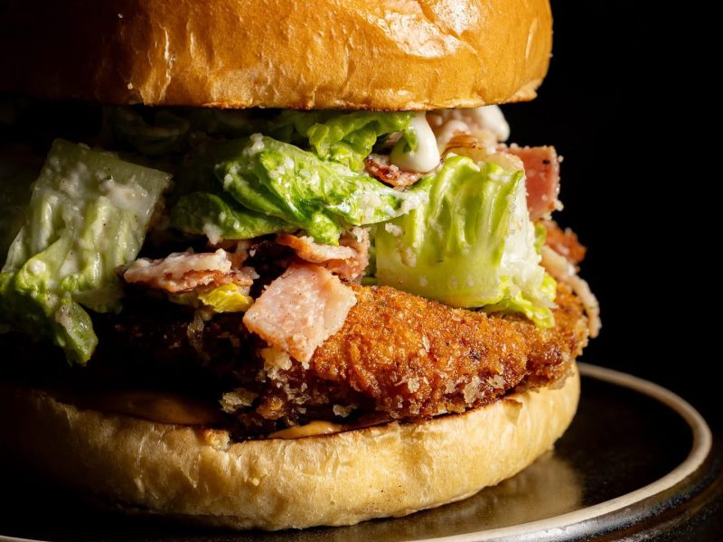 Σαλάτα με iceberg, φρέσκο γαλλικό μαρούλι, φιλέτο κοτόπουλο, σπιτικά κρουτόν, γλυκό καλαμπόκι, παρμεζάνα και sauce καίσαρα